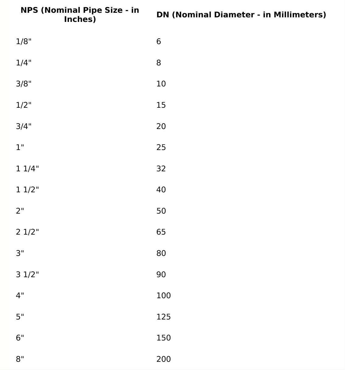 উত্তর হল হ্যাঁ। সাধারণত, আপনি 25 দ্বারা গুণ করে পুরো-ইঞ্চি মাত্রাগুলিকে DN তে রূপান্তর করতে পারেন। উদাহরণস্বরূপ: