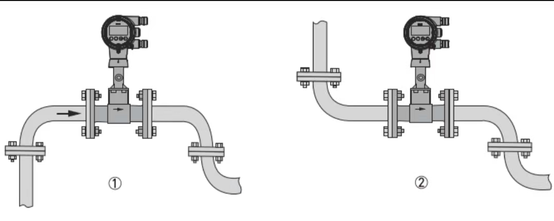 2. ফ্লোমিটারটি অবশ্যই এমন একটি স্থানে ইনস্টল করতে হবে যা নিশ্চিত করে যে সাধারণ পরিমাপ অর্জনের জন্য পাইপটি সম্পূর্ণ পূর্ণ হয়েছে।
